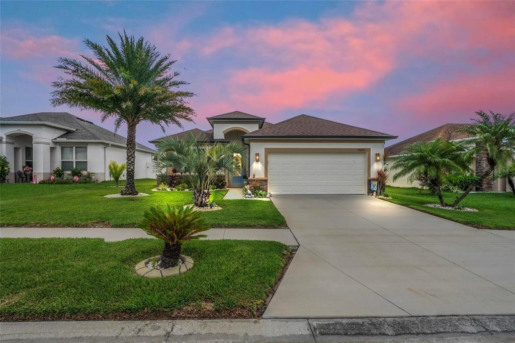 Better than new with lots of upgrades! Why wait to build! Located in the Highlands gated community, this 2019 built home has 3 bedrooms, 2 bathrooms, 2 car garage and a screen enclosed in-ground pool. It is well maintained and move in ready! All upgraded lights and fans in all the right area as well all the faucets and European doors in every room. Entry foyer, open floor plan, separate dining room, office/den, large great room, a superb kitchen with upgraded quartz countertops, 42” upgraded, white cabinets, eat in dinette area. Upgraded Stainless Steel Kitchen Aid Appliances Split bedroom plan with large master at the back for privacy. Master bedroom is spacious with a trey ceiling, double window. Dual sinks, walk in shower, garden tub, water closet, a linen closet as well as a large walk in closet. 2 additional bedrooms with a guest bath easily make this a family home ready to move into. Volume ceilings, recessed lighting, alarm, ceiling fans, ceramic tiles thru out the home giving it a clean, sleek look. Screened back 10 x 15’ extended lanai is under roof, just off the kitchen for easy access. This home is perfect for entertaining. Move in ready with high end finishes. The low HOA fee of $158 covers maintenance of the common areas, gate, fountain and BASIC CABLE. This newer community. Great friendly neighbors that will welcome you. Community is close to shopping, restaurants, beaches & roads for convenience. You are going to like this one!
